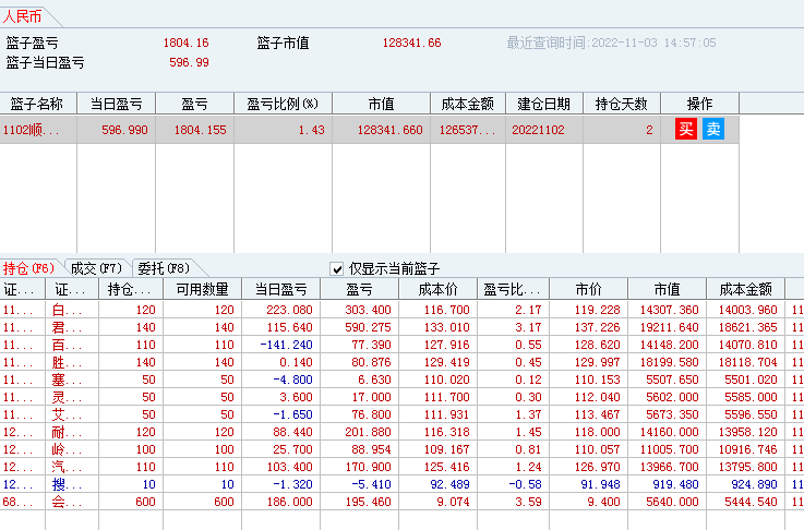 收益率最高的是唯一只股票,其它全是可转债。之所以股票配得少,与这次对行情的判断是有很大关系的:判断这次反弹高度有限,且处于反弹不明朗的初期,所以,不敢配太多股票,等行情明朗的时候,再做调整。